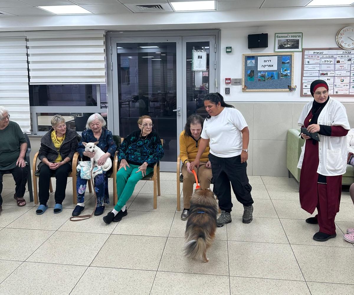 המתנדבות ישבו ושחקו עם הדיירים בשולחנות ושוחחו איתם.