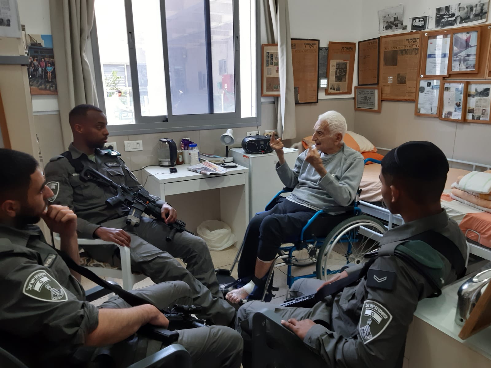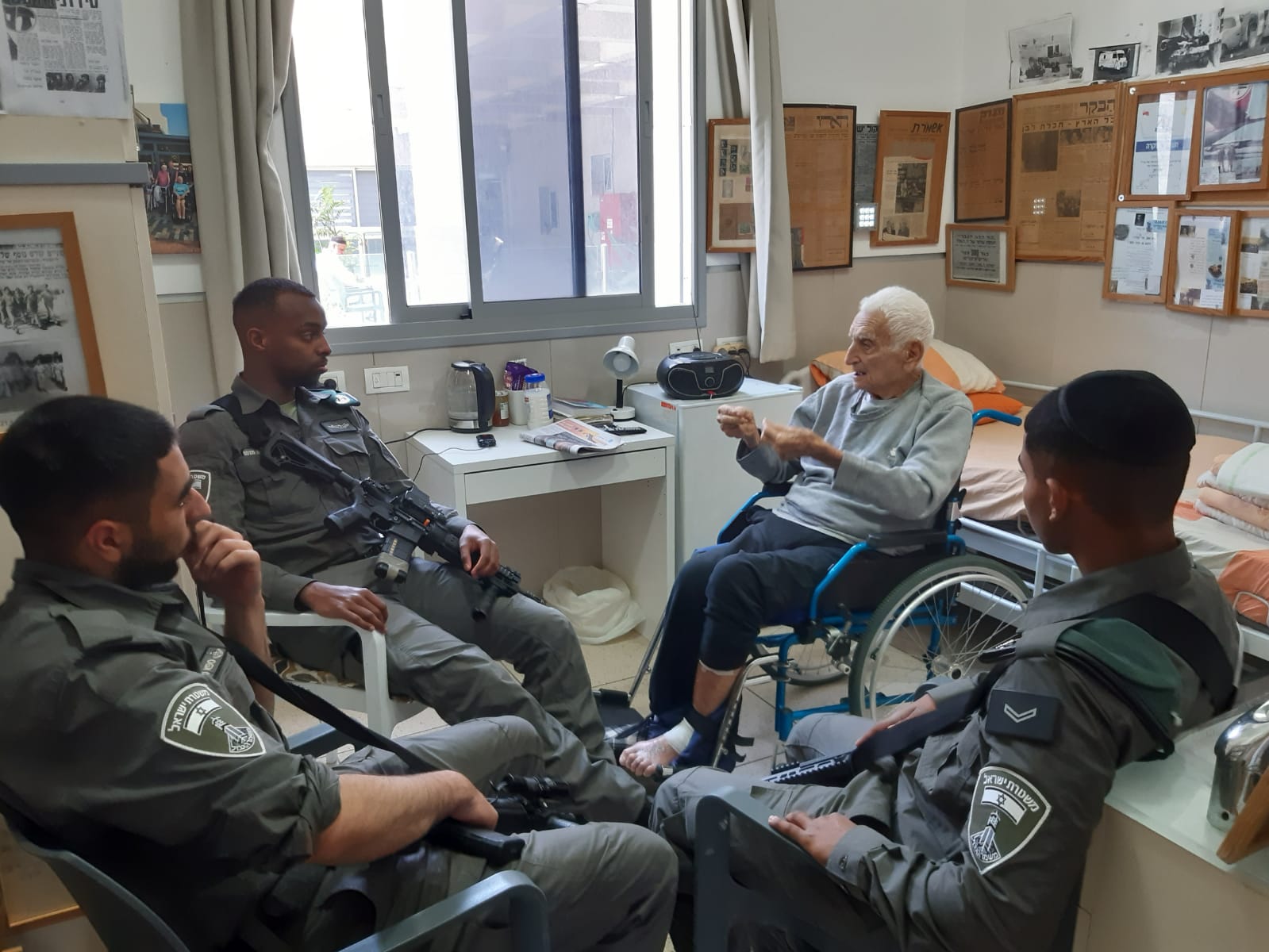 בהמשך היום, זכינו לביקור של חיילי מג"ב שישבו עם דיירים ובעיקר נתנו מקום ואוזן קשבת לסיפורי העבר והמורשת.