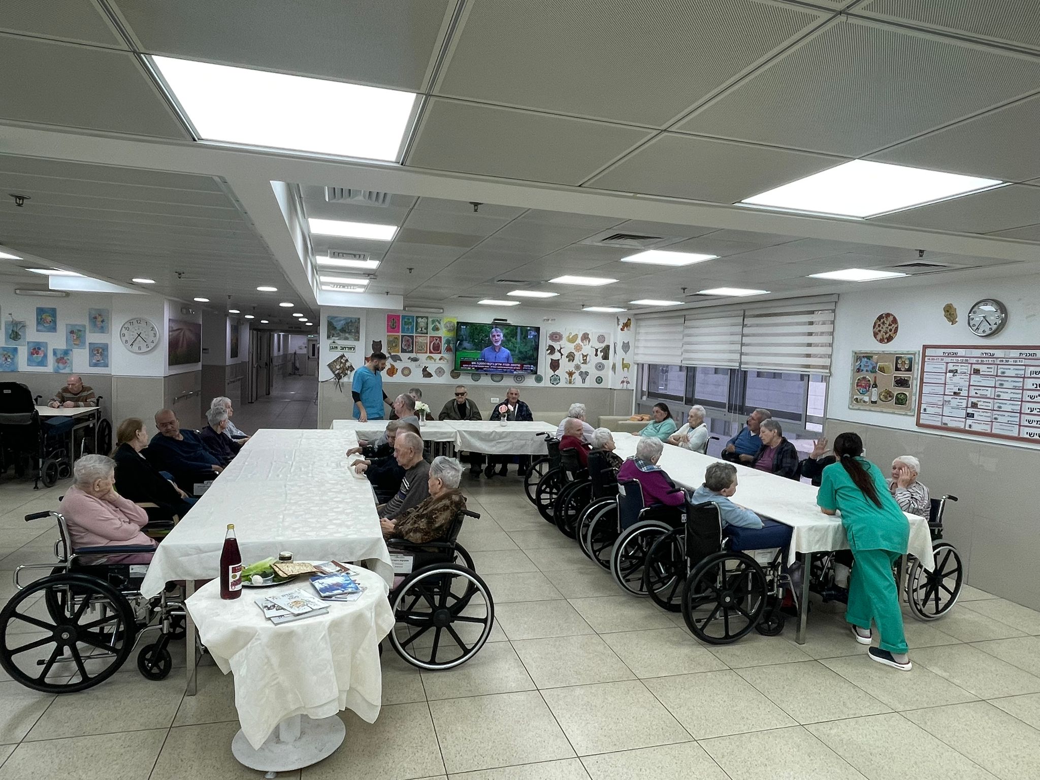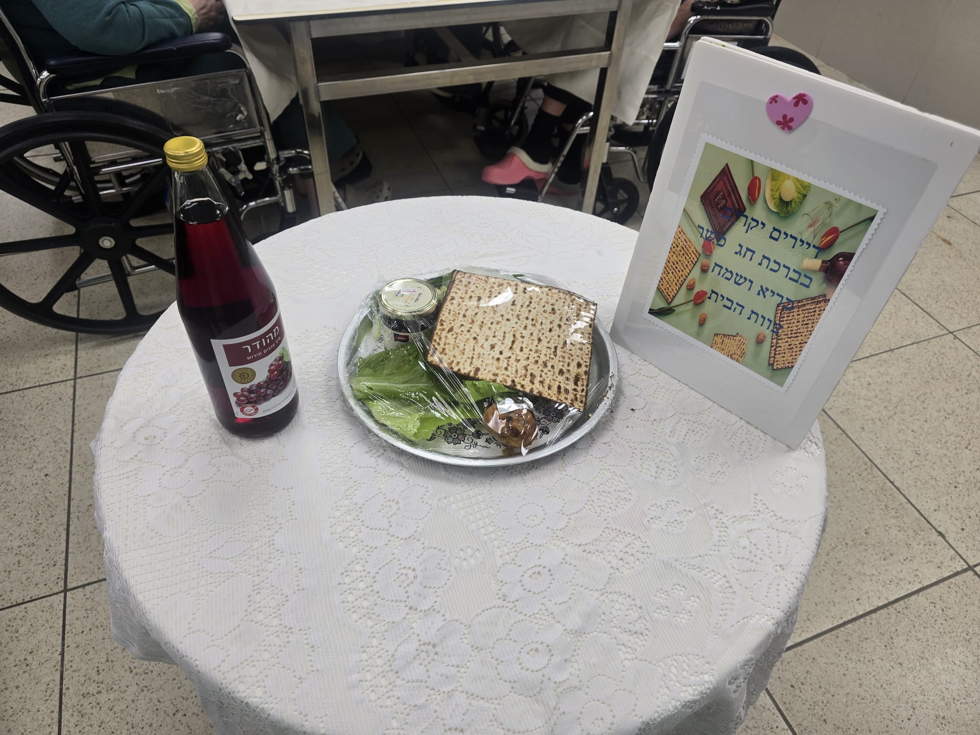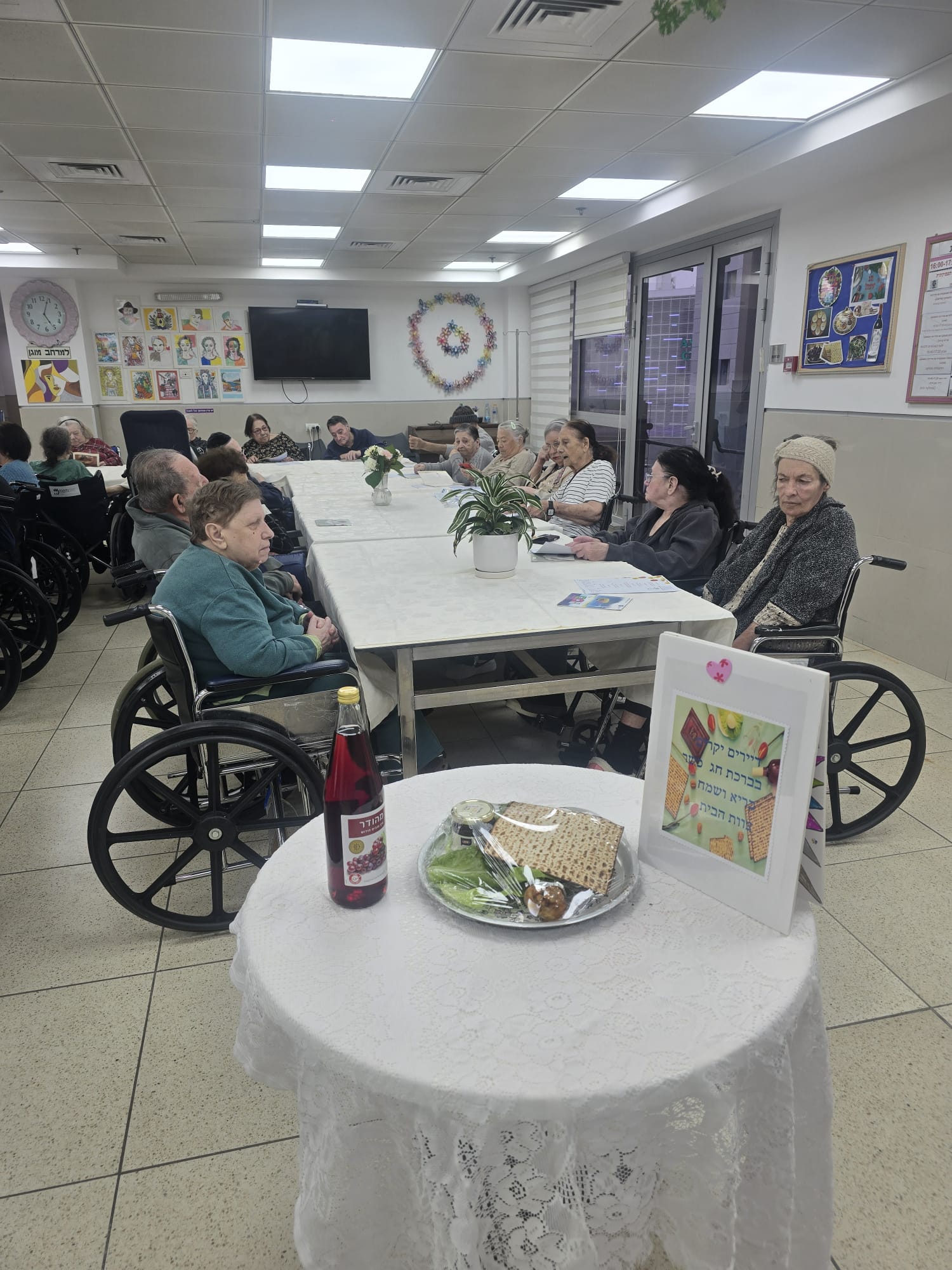 שולחנות סודרו בהתאם, דיירים הולבשו חגיגי ונערך בכל מחלקה ליל סדר ע"י הדיירים וצוות המחלקה.