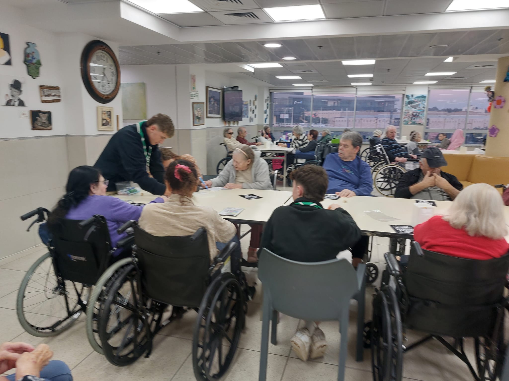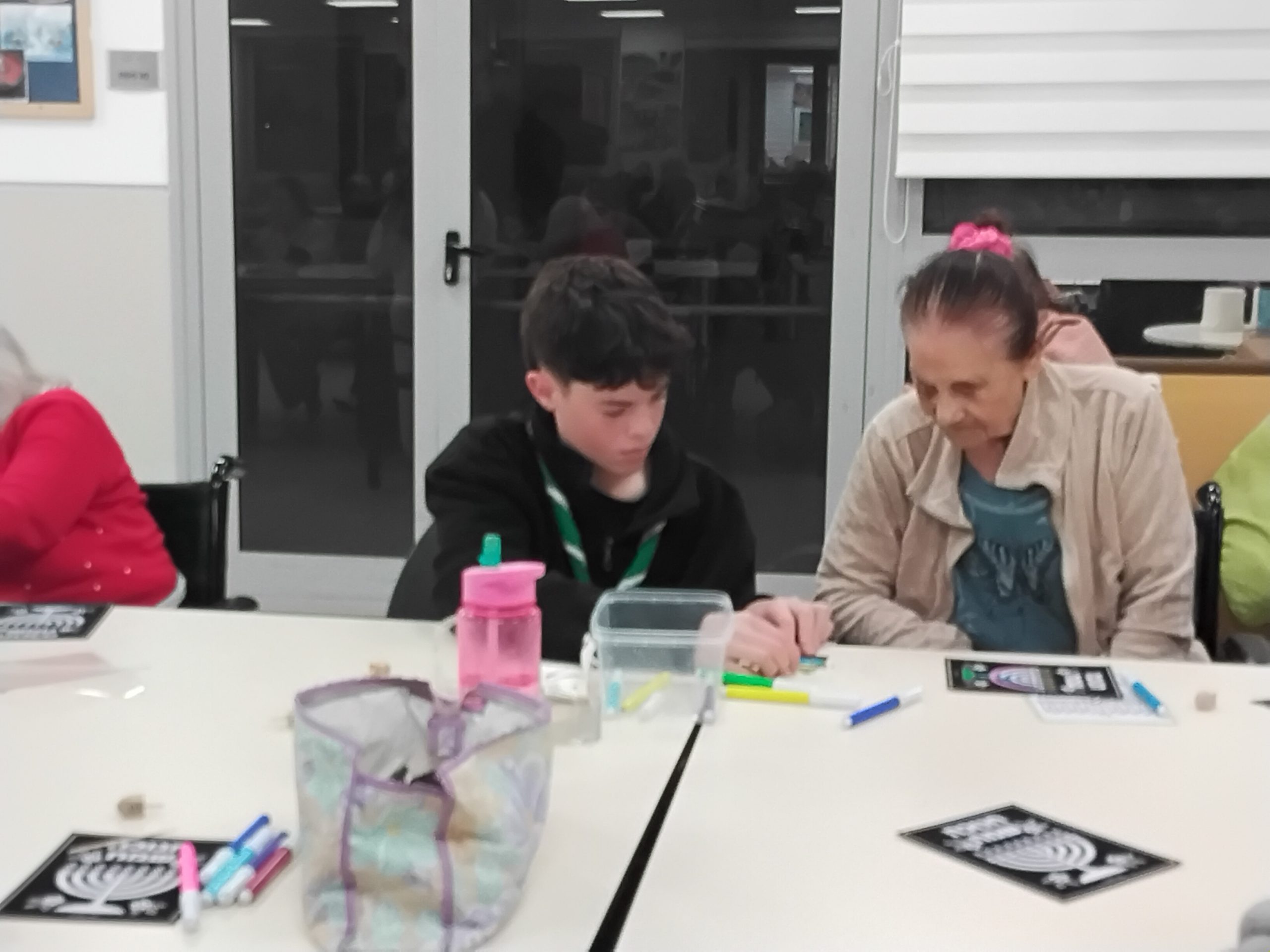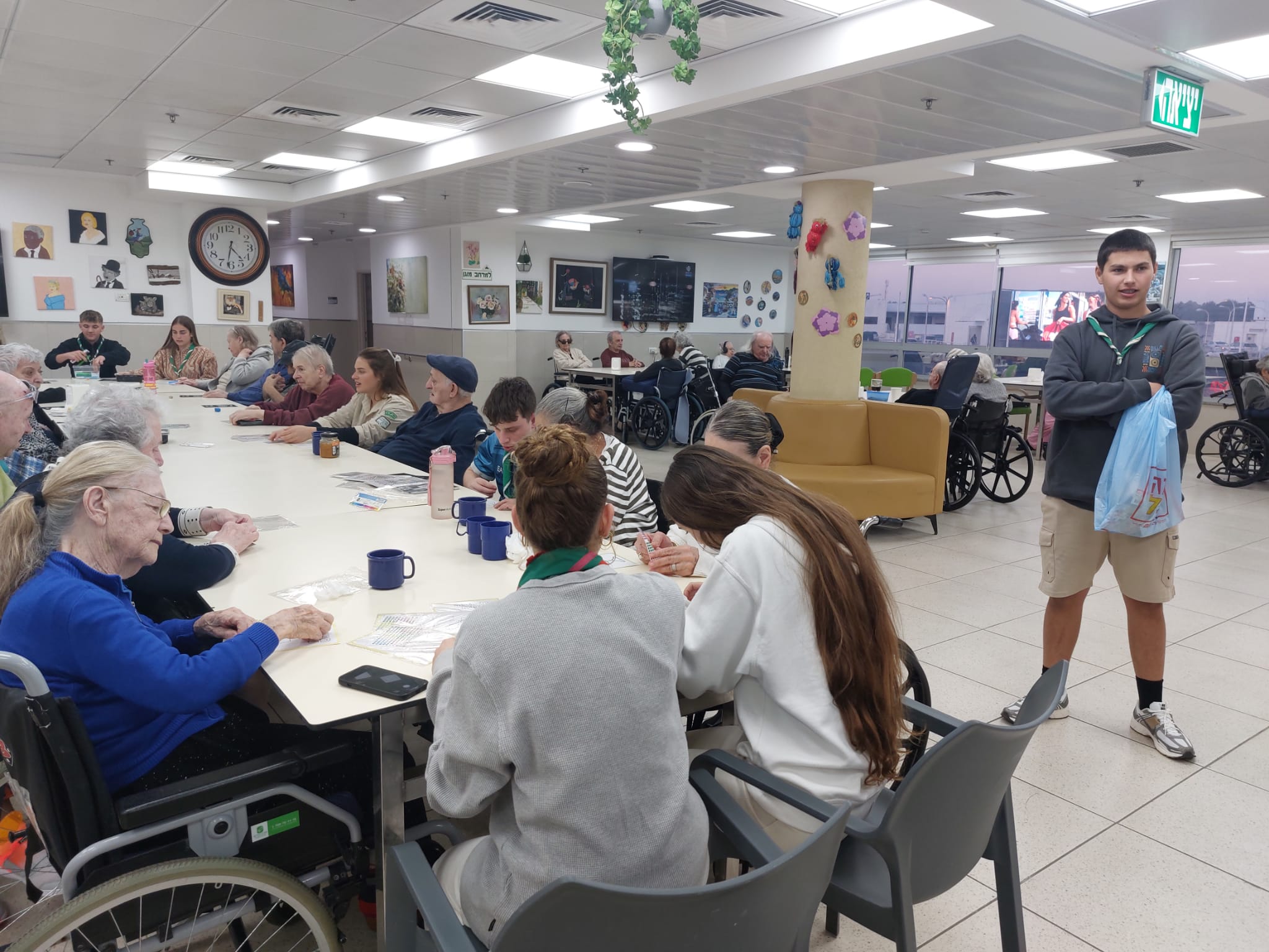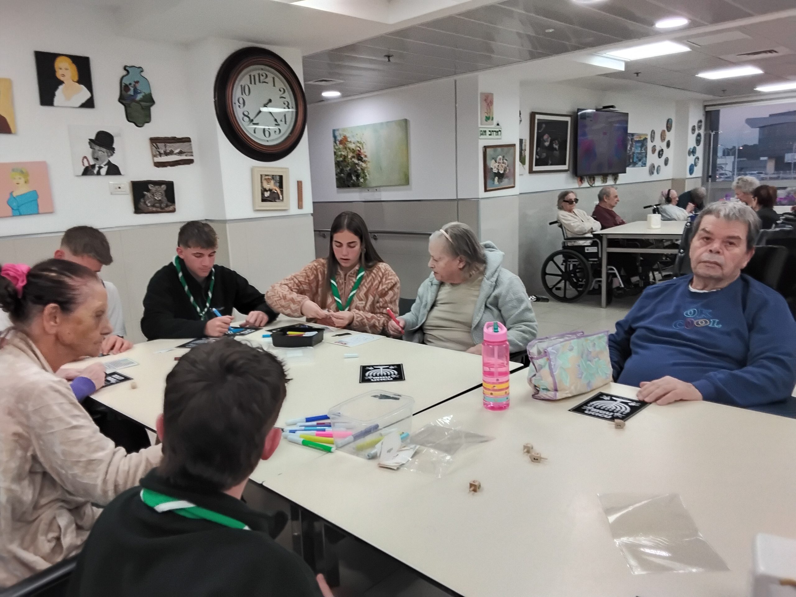 כ־10 נערים ונערות הגיעו לפעילות משותפת עם הדיירים, שכללה יצירה, מוזיקה טובה ולסיום-חידון טריוויה מהנה.